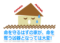 - 地震による被害者の80~90%は建物の倒壊によるものです。 ご自宅が基準通りの耐震強度を備えていれば、被害はほぼ防ぐことができます。