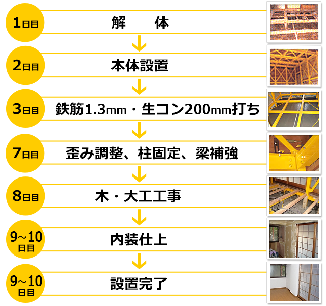 建て替え、引越し不要! 最短7~10日での施工が可能です。どんな間取りの既存住宅でも組み込み可能です。